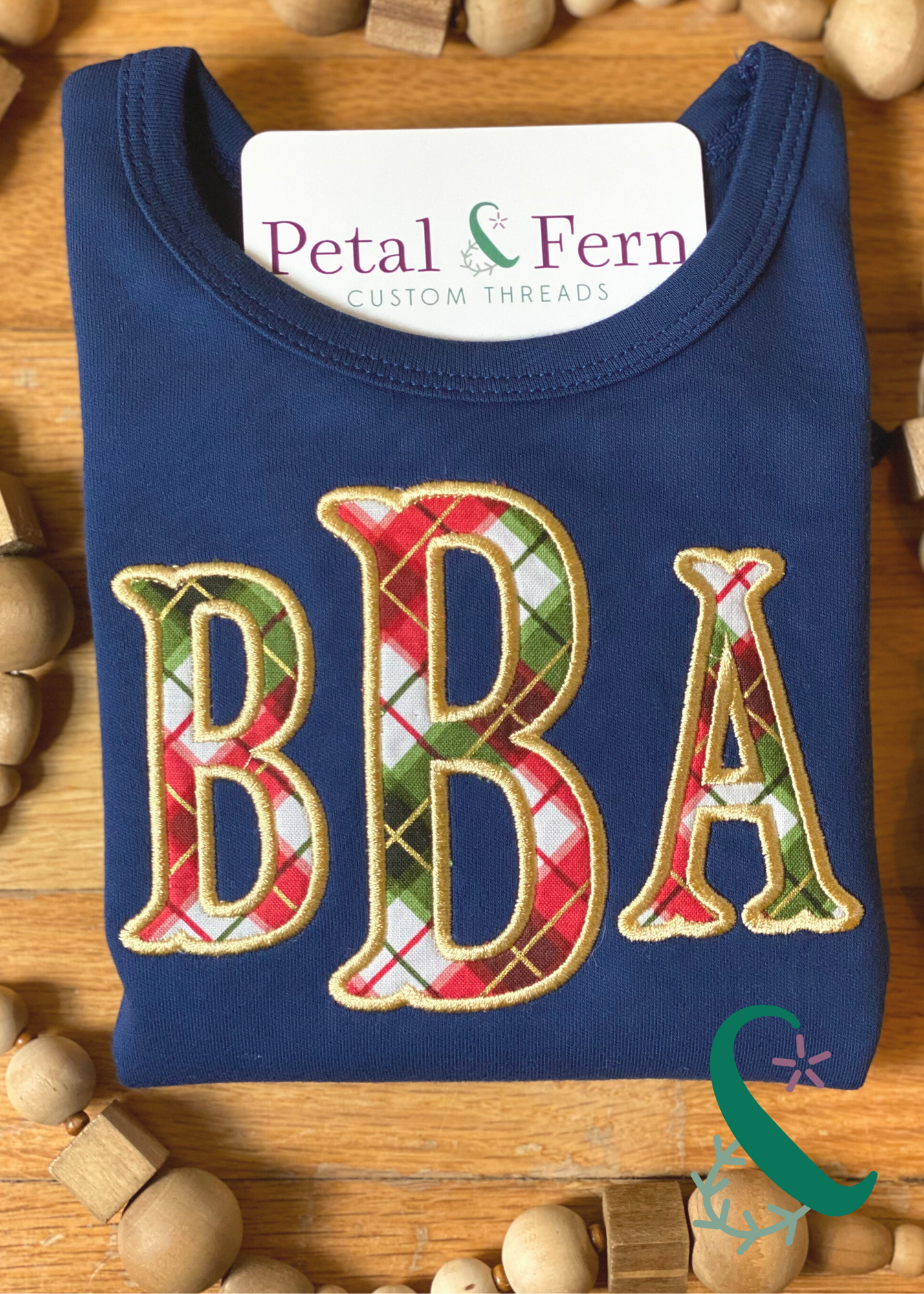 • Load image into Gallery viewer, Applique Monogram in Christmas Plaid