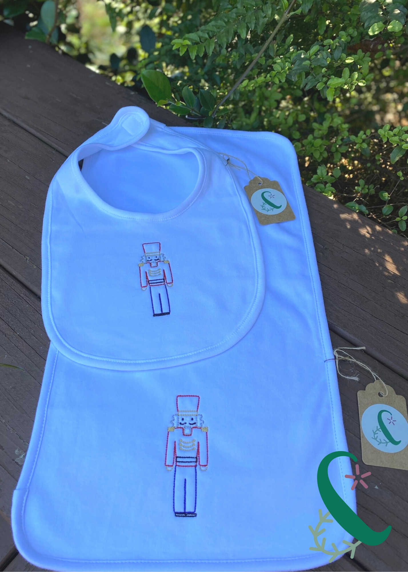 Bib & Burp Cloth with Nutcracker (Sold Individually or as a Set)