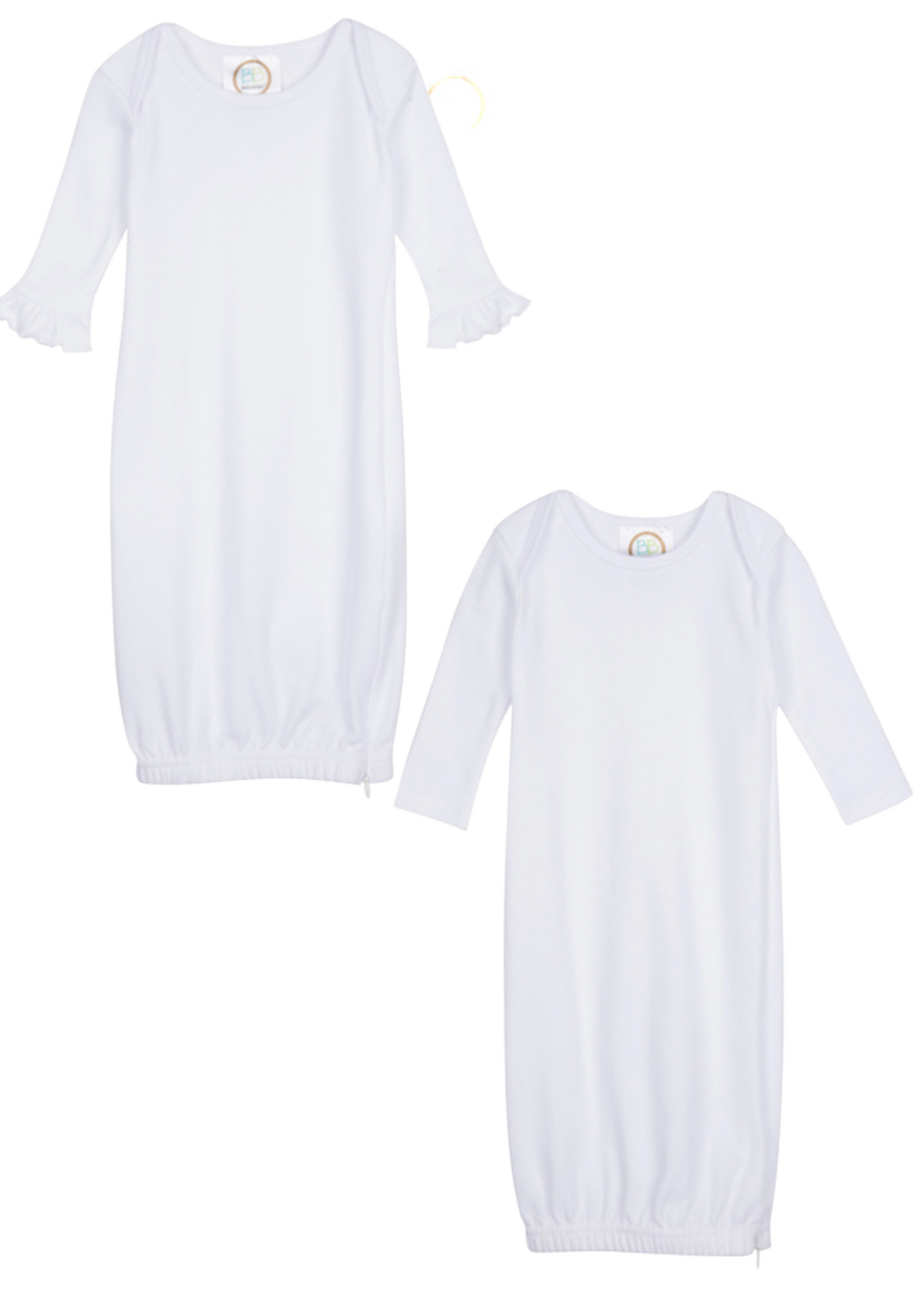 Our infant baby gowns are 6+ oz 100% combed cotton interlock cotton