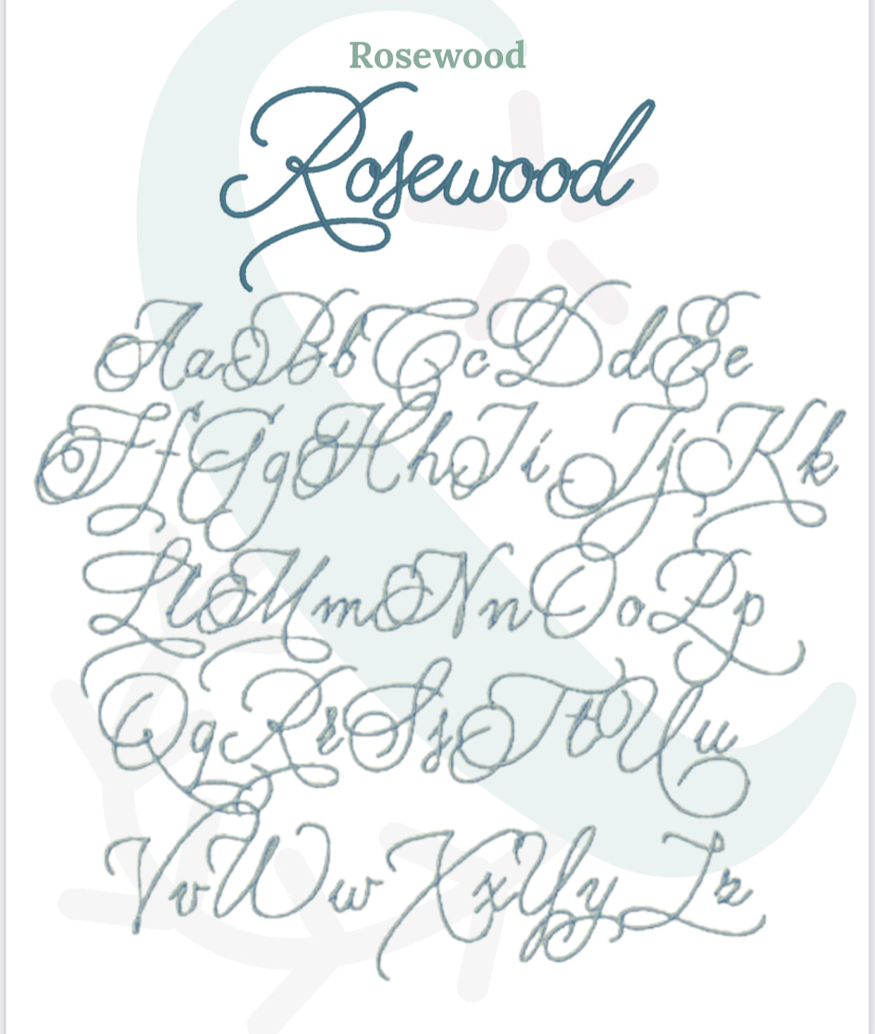 Font Pictured is Rosewood font in Red Thread. Gold Metallic thread used for holly accents.